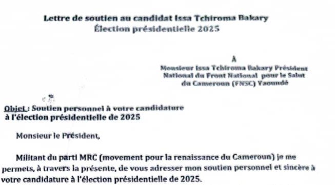 Un membre du MRC apporte son soutien à Issa Tchiroma Bakary