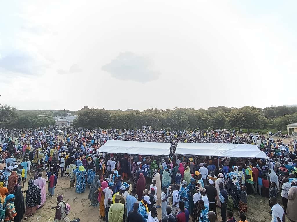 Sur la place de la grande cérémonie de Mokolo, la scène était à la fois festive et politique : banderoles, t-shirts aux effigies du parti, danseurs traditionnels et militants de tous âges réunis sous le soleil brûlant.