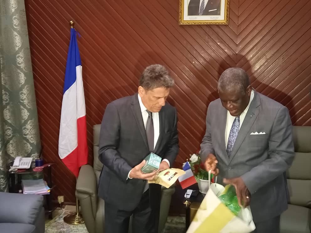 Gabriel Mbaïrobe, ministre de l’Agriculture et du Développement rural (Minader) a accordé ce jour à Yaoundé une audience au nouvel ambassadeur de France au Cameroun, Sylvain Riquier. Les deux hommes ont échangé sur les possibilités de renforcement de la coopération entre les deux pays dans le secteur de l’agriculture. Cette rencontre fait partie des différentes audiences que Sylvain Riquier a eu depuis son arrivée au Cameroun, il y a exactement un mois. « Nous avons évoqués les différents projets sur lesquels la France et le Cameroun travaillent. Par exemple nous avons parlé de la formation des jeunes et les défis de leur insertion professionnelle une fois qu’ils sont formés. Nous avons également évoqué les perspectives qui existent pour les entreprises privées désireuses de s’investir dans l’agriculture qui est évidemment un gisement d’emplois et de revenus pour les populations camerounaises », a déclaré le diplomate français.